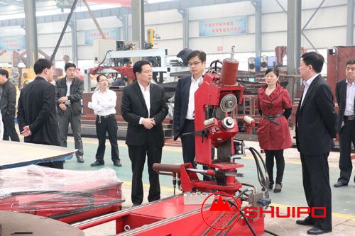 2014年4月22日10時(shí),濟(jì)寧市市政府石中和副市長(zhǎng)一行在市縣領(lǐng)導(dǎo)的陪同下,來公司進(jìn)行視察、調(diào)研。公司劉憲福董事長(zhǎng)向石中和副市長(zhǎng),詳細(xì)介紹了“無模板異形封頭自動(dòng)旋邊機(jī)”、“數(shù)控封頭旋壓機(jī)”、“數(shù)控廂板自動(dòng)焊接機(jī)”、“異形罐體環(huán)縫TIG自動(dòng)焊機(jī)”等多個(gè)公司自主研發(fā)的新產(chǎn)品。石市長(zhǎng)詳細(xì)詢問了公司的運(yùn)作狀況和發(fā)展前景,并鼓勵(lì)公司開拓進(jìn)取,積極創(chuàng)新,不斷打造出高科技、高性能的產(chǎn)品。